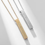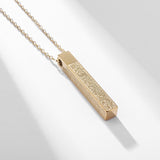 A sophisticated long and 3D bar pendant that can be worn by anyone. It beautifully displays “Ayatul Kursi” (The Throne Verse from the Holy Quran) on all faces in delicate Arabic calligraphy.